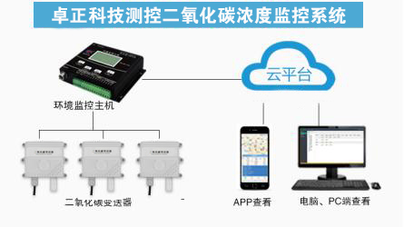 室內(nèi)二氧化碳變送器起到實時監(jiān)測的目的,它將數(shù)據(jù)傳送環(huán)境監(jiān)控主機,通過小主機將數(shù)據(jù)上傳至云平臺,用戶通過登錄卓正科技云平臺查看辦公室內(nèi)的二氧化碳濃度變化。